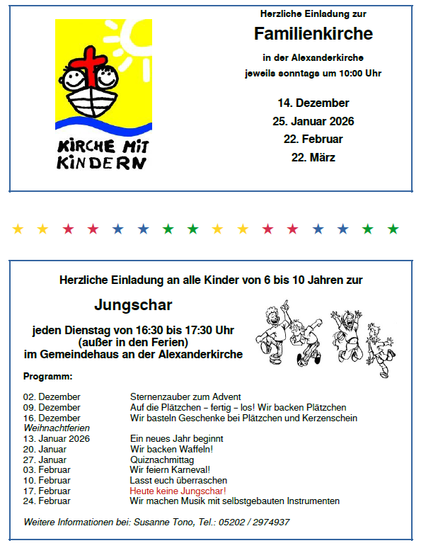 Liebe Gemeinde, hier finden Sie Informationen zu kommenden Ereignissen und Veranstaltungen.